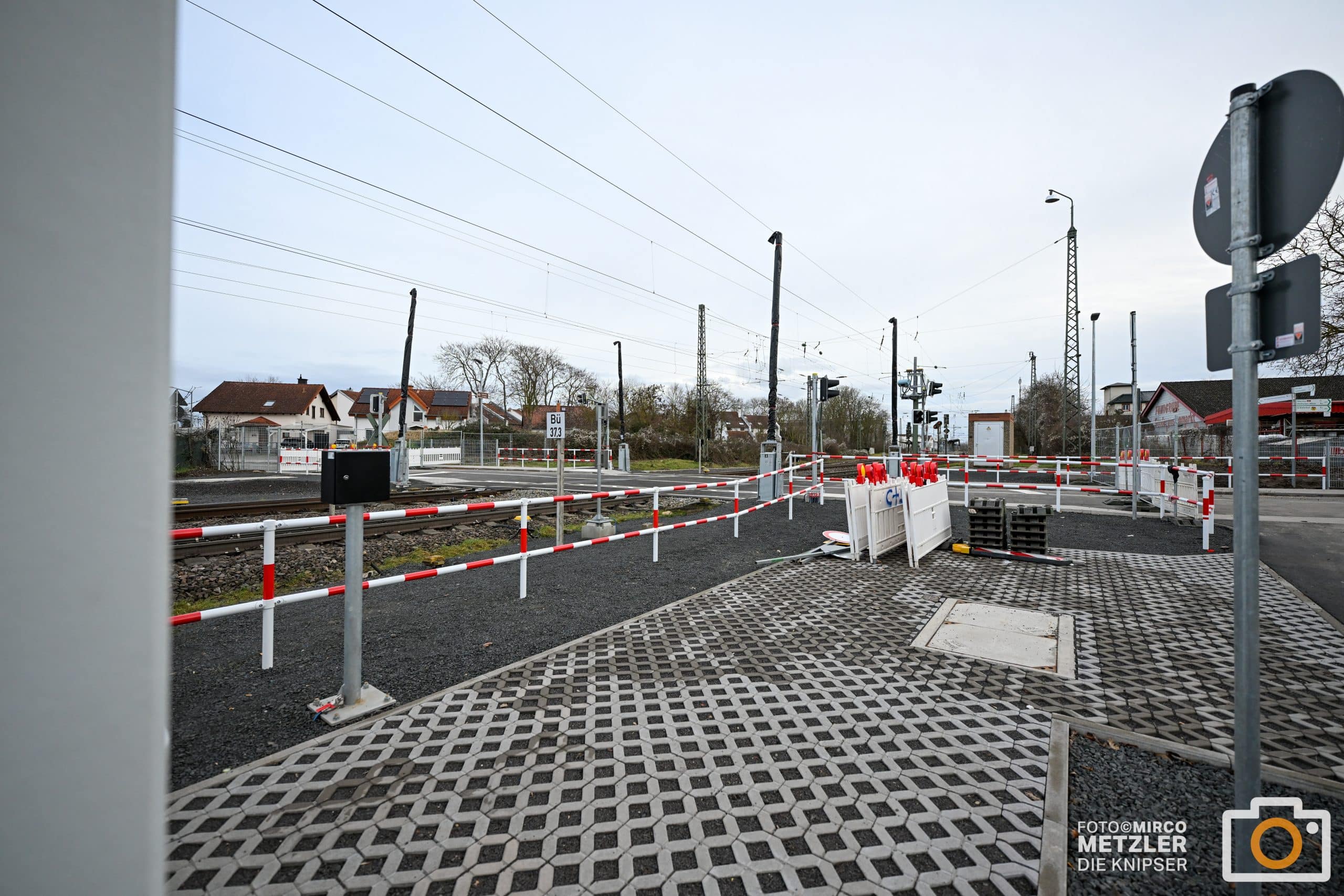 Der modernisierte Bahnübergang im Ziegelhüttenweg in Osthofen ist zwar baulich fertiggestellt, für den Verkehr jedoch weiterhin nicht freigegeben. Grund dafür sind zusätzliche technische Arbeiten, die nach Abschluss der eigentlichen Bauphase notwendig wurden. Nach Angaben der Deutschen Bahn müssen neue Komponenten noch mit der bestehenden Stellwerkstechnik abgestimmt werden. Eine Öffnung könnte sich deshalb noch bis ins Frühjahr verzögern.
