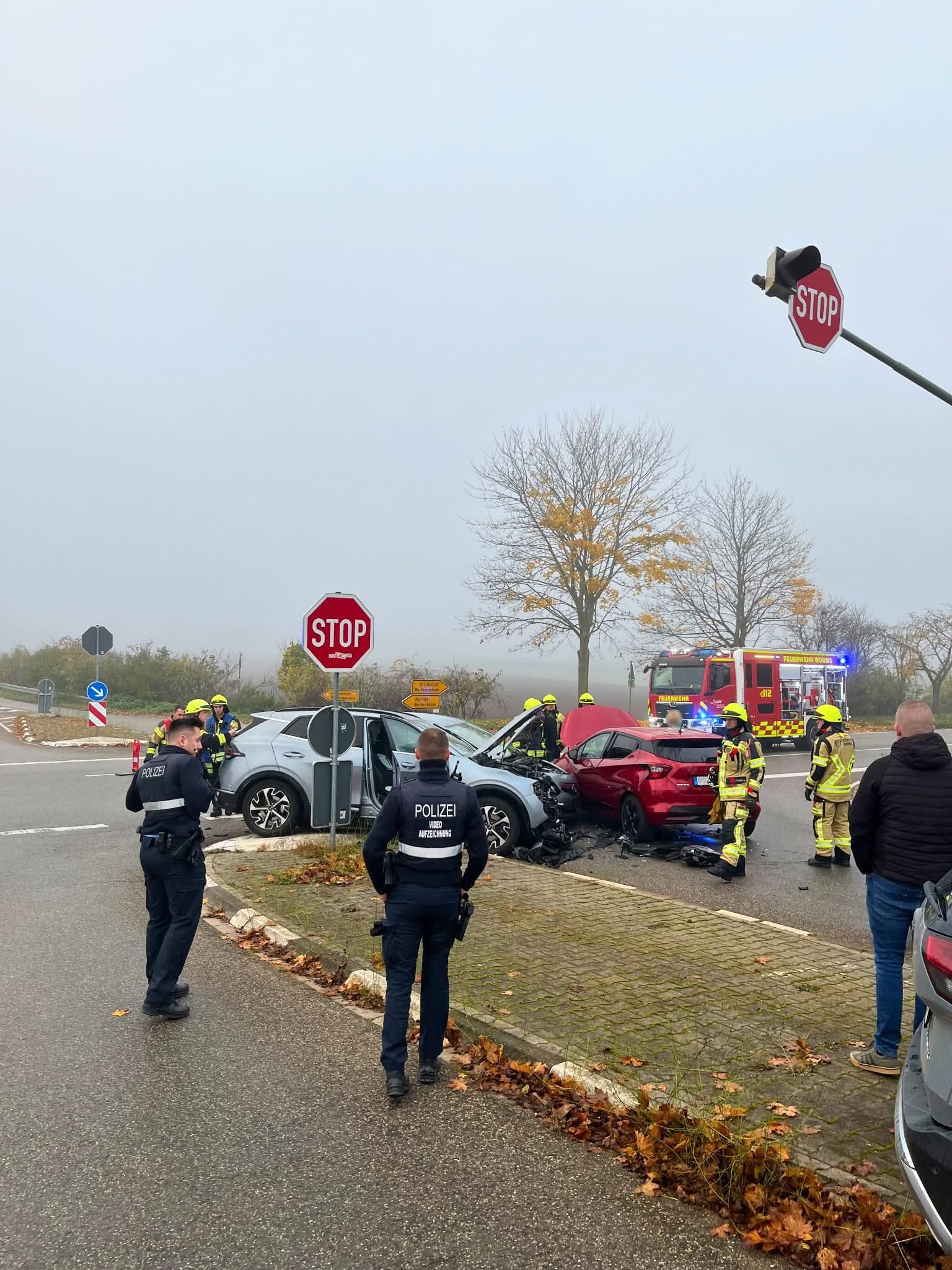 Am Montagmorgen, 10. November, kam es an der Kreuzung der Landesstraße 395 und der Kreisstraße 3 zu einem Verkehrsunfall, bei dem drei Fahrzeuge miteinander kollidierten. Dabei wurden drei Personen leicht verletzt. Sie wurden vom Rettungsdienst vorsorglich in ein Krankenhaus gebracht, um dort weiter untersucht zu werden.