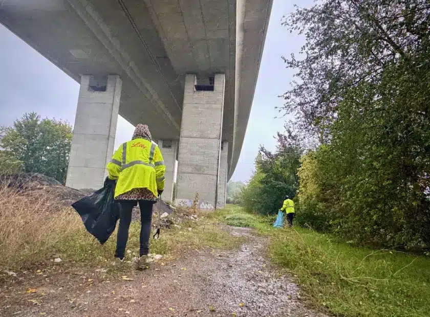 Beim dritten Projekt in Alzey räumten rund 15 Lillyaner den Müll unter der Autobahnbrücke im Industriegebiet weg. Bei anhaltendem Regen und kalten Temperaturen holte das tatkräftige Team Säcke voller Verpackungsmüll, alter Kleidung, Glasflaschen und sogar Autoscheinwerfer aus den Hecken entlang der Karl-Heinz-Kipp-Straße. Ruckzuck war der Hänger voll mit Unrat, der anschließend durch den Baubetriebshof der Stadt entsorgt wurde.