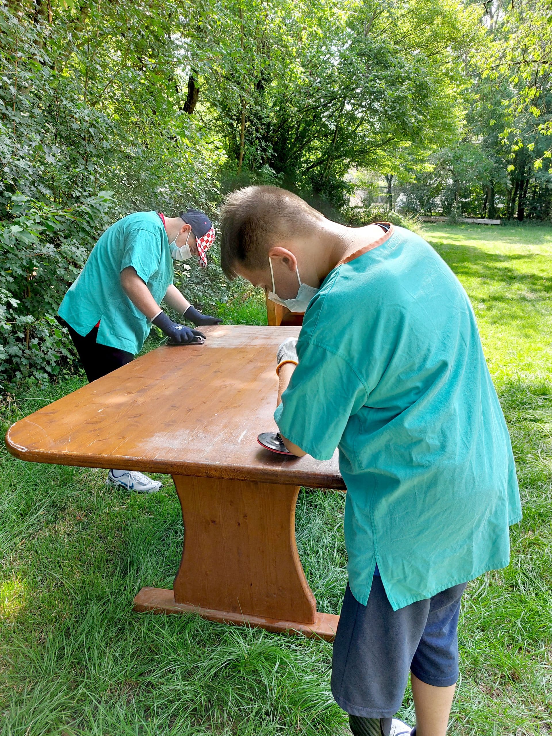 Erste Bausteine für die Tagesgruppe, die neben den bisherigen Angeboten, Veranstaltungen und Aktionen im Gemeinschaftsgarten bestehen soll und damit auch die Begegnung und Interaktion verschiedener Akteure fördert, sind bereits realisiert: So haben die Alpakas, die der Caritasverband Worms e.V. auf dem Außengelände seiner Demenz-WG St. Martha in Mörstadt hält, bereits eine „Sommerresidenz“ in der Herrngasse bekommen. Schon jetzt gibt es egelmäßige Begegnungen zwischen den Jugendlichen und den Kleinkamelen, die nachweislich eine positive Wirkung auf Menschen haben – immer wieder ein Highlight für die Kids. „Alle weiteren Arbeiten werden dann je nach Wetterlage in den nächsten Monaten stattfinden, sodass wir das Angebot voraussichtlich ab Frühsommer 2026 an mindestens drei Tagen pro Woche umsetzen können“, sagt Angelika Weinkötz. Und schon jetzt helfen die Tagesgruppen-Kids beim Aufarbeiten von Möbeln für den geplanten Gruppenraum – und sind mit Feuereifer und großer Vorfreude dabei.