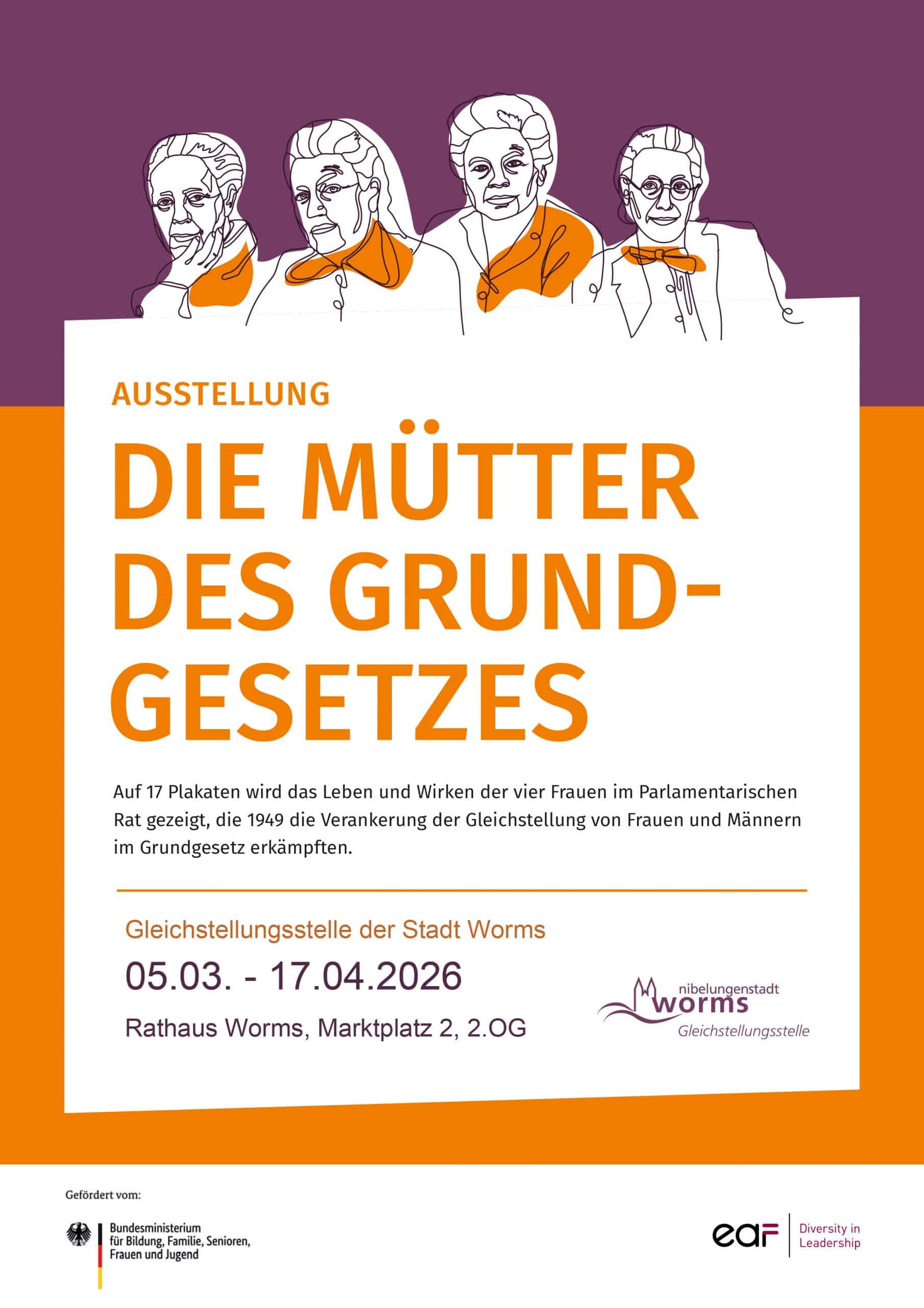 Anhand von Biografien, historischen Dokumenten und Zeitzeugnissen zeichnet die Ausstellung nach, wie politisches Engagement, Beharrlichkeit und überparteiliche Zusammenarbeit diese Grundrechtsformulierung möglich machten. Die Ausstellung macht zugleich deutlich, dass Gleichberechtigung kein abgeschlossener Prozess ist. Sie schlägt den Bogen von den politischen Auseinandersetzungen der Nachkriegszeit bis zur noch immer andauernden Unterrepräsentanz von Frauen in deutschen Parlamenten. Oberbürgermeister Adolf Kessel wird die Ausstellung am 5. März um 17 Uhr im 2. Obergeschoss des Rathauses der Stadt Worms eröffnen. Die Gleichstellungsbeauftragte Jasmine Olbort führt anschließend in die Schau ein, die dann bis zum 17. April während der Öffnungszeiten des Rathauses zu sehen sein wird.