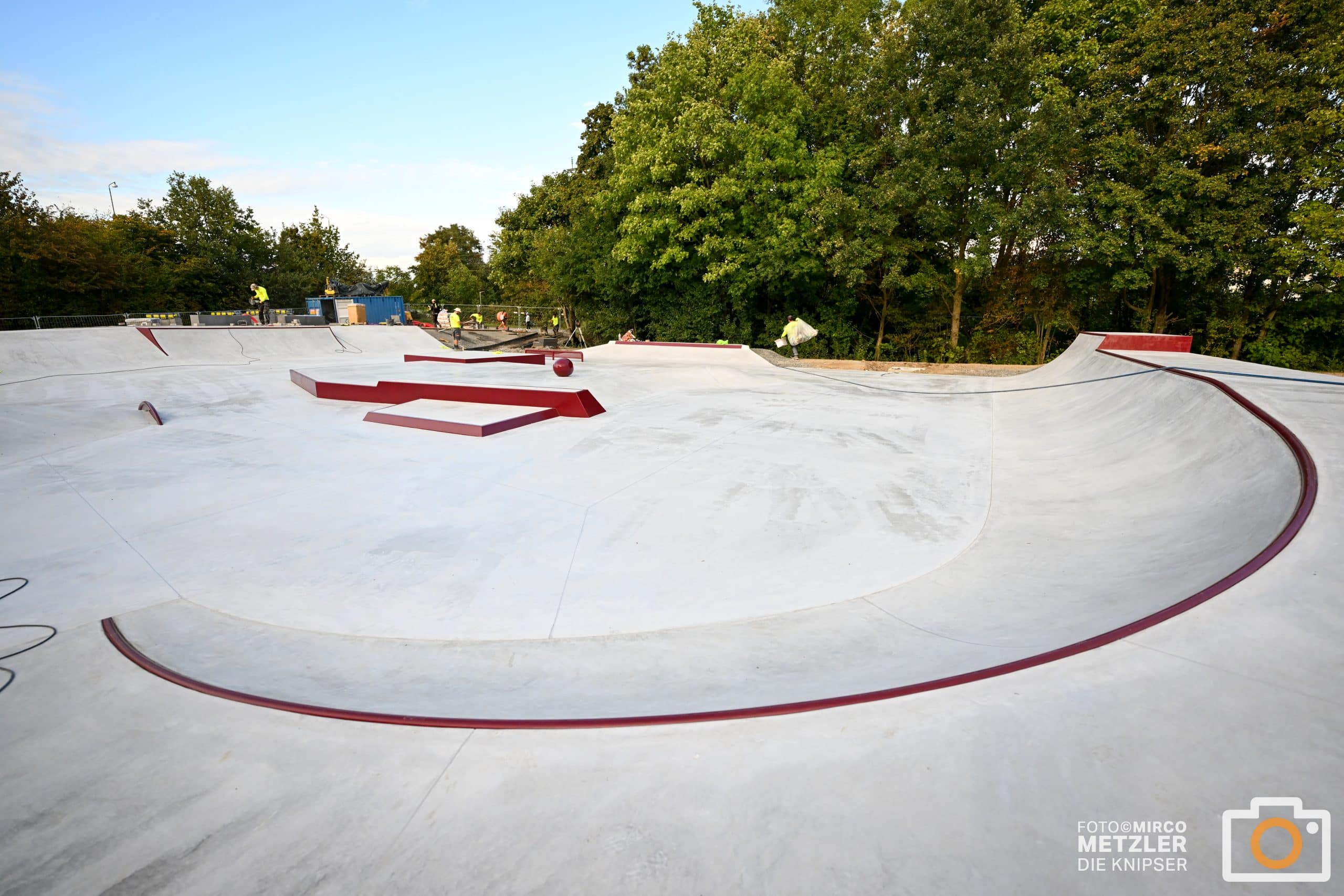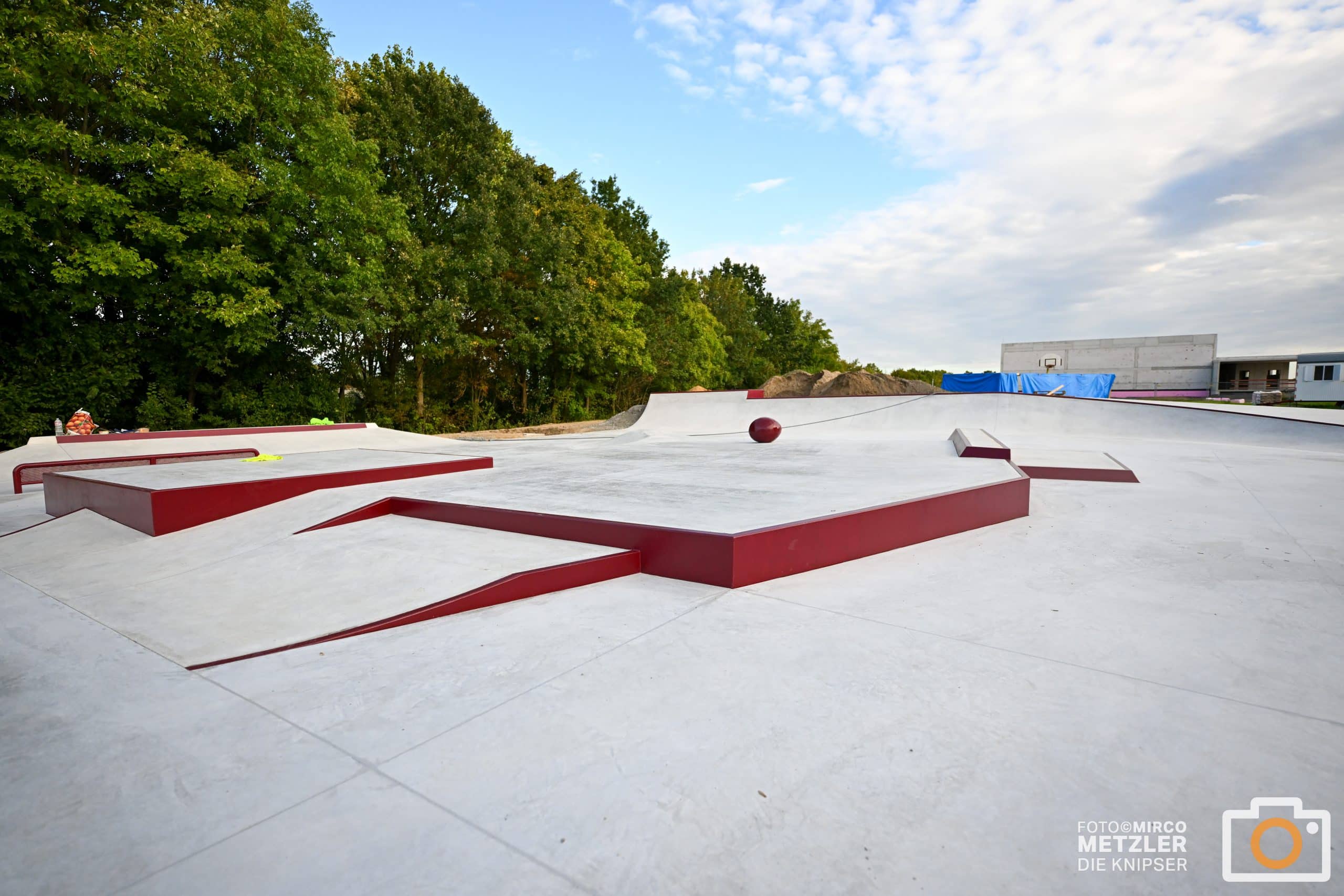 Die neue 600.000-Euro-Skateanlage in Osthofen nimmt Formen an: Erste Rampen und Rails sind bereits sichtbar, die Einweihung ist für Oktober geplant. Fotos: Mirco Metzler/Die Knipser