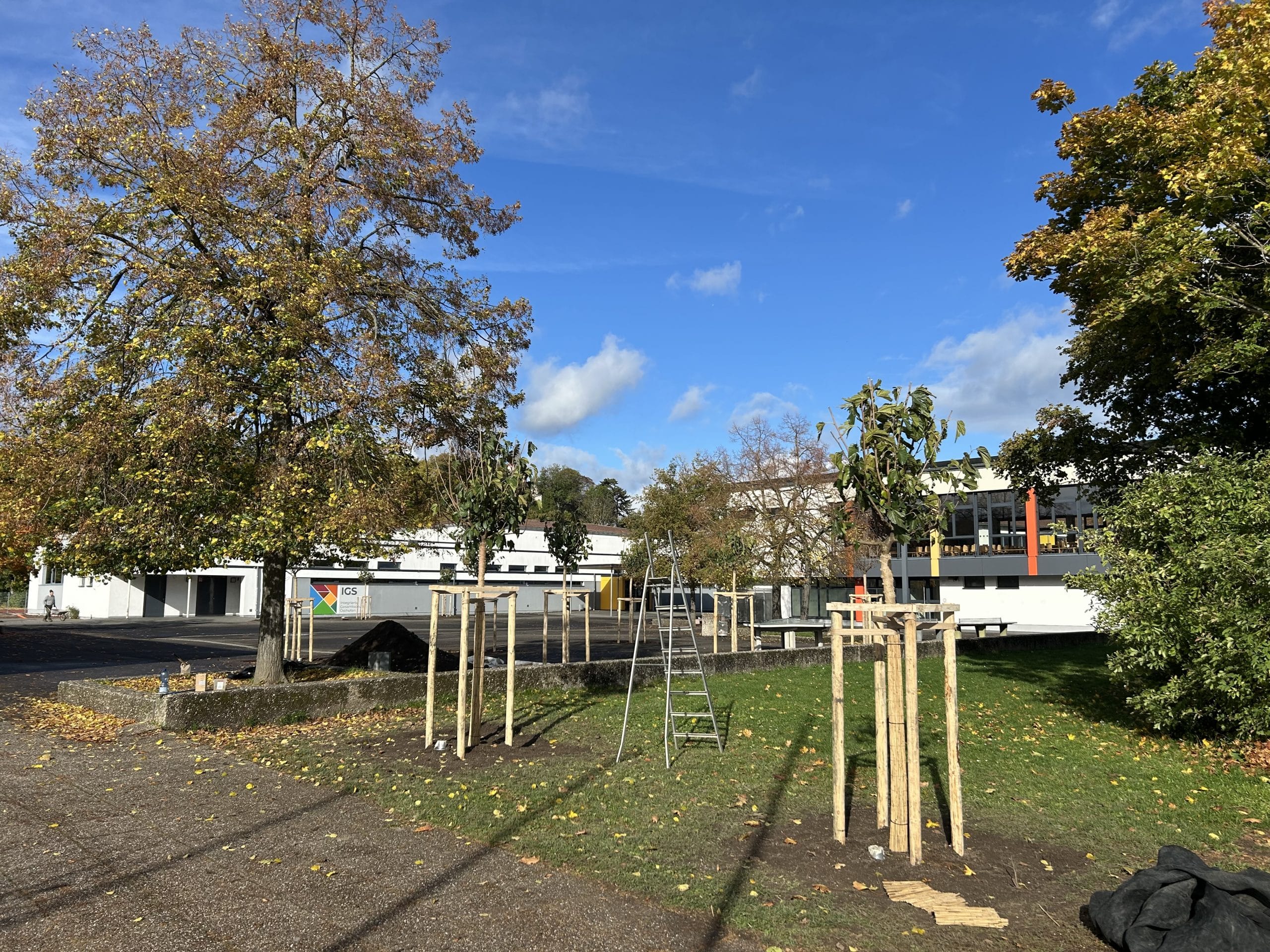 Weitere 23 Bäume und rund 135 Meter Sträucher folgen auf dem Außengelände der Wonnegauschule und der Integrierten Gesamtschule in Osthofen. Mit den neuen Bäumen entsteht nicht nur mehr Grün auf den Schulhöfen, das den Schülerinnen und Schülern zugutekommt, sondern auch ein wertvoller Beitrag zum Klima- und Artenschutz im Landkreis Alzey-Worms.