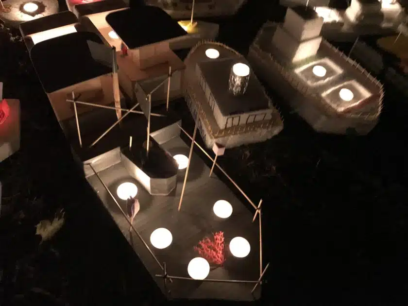 Dabei werden wieder kleine, mit brennenden Teelichtern geschmückte Schiffchen aufs Wasser gesetzt.