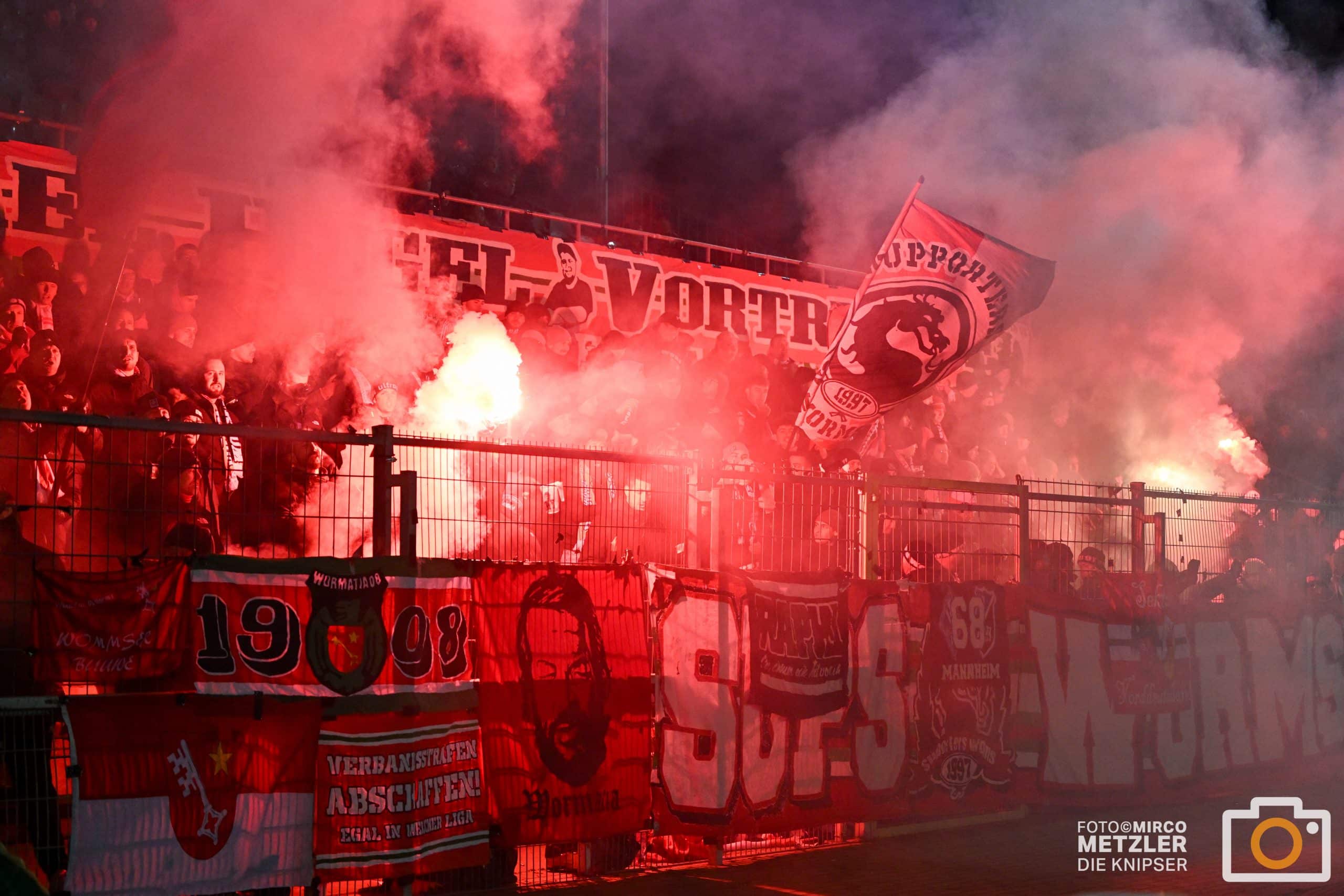 Trotz starker erster Hälfte und viel Leidenschaft unterliegt Wormatia Worms dem FCK II mit 1:2. Pyrotechnik, vergebene Chancen und alte Abwehrprobleme prägen einen bitteren Fußballabend. Fotos: Mirco Metzler/Die Knipser