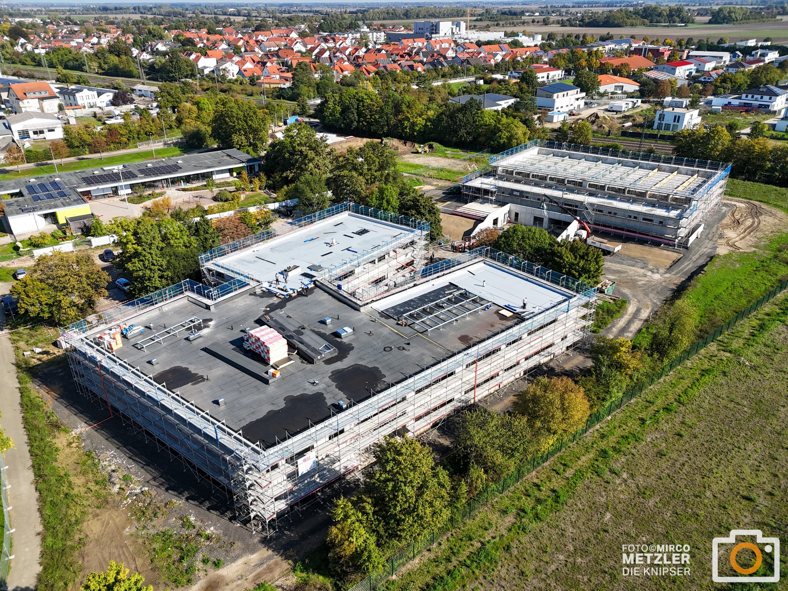 Der Rohbau steht: Auf dem Osthofener Festplatz wächst eine fünfzügige Grundschule mit moderner Sporthalle heran – ein Ort für Bildung, Bewegung und Begegnung. Fotos: Mirco Metzler/Die Knipser