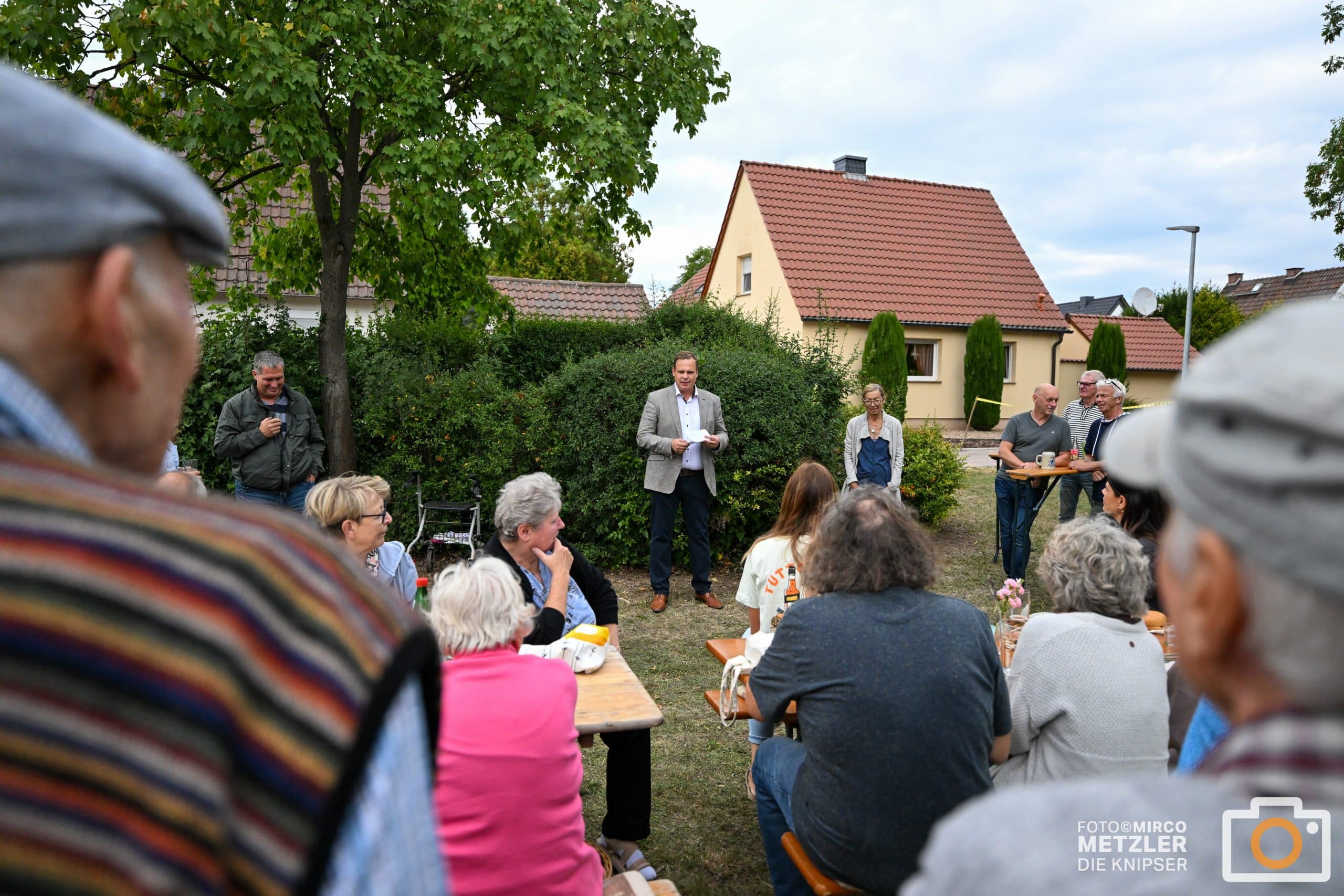 Nach der offiziellen Eröffnung wurde aus dem Termin schnell ein kleines Straßenfest. Bei Grillwürstchen, frischen Salaten und einem kühlen Sander Bier aus Worms kamen Nachbarn und Gäste zusammen. Die entspannte Stimmung und das sommerliche Wetter machten die Feier zu einem gelungenen Abschluss der Bauarbeiten.