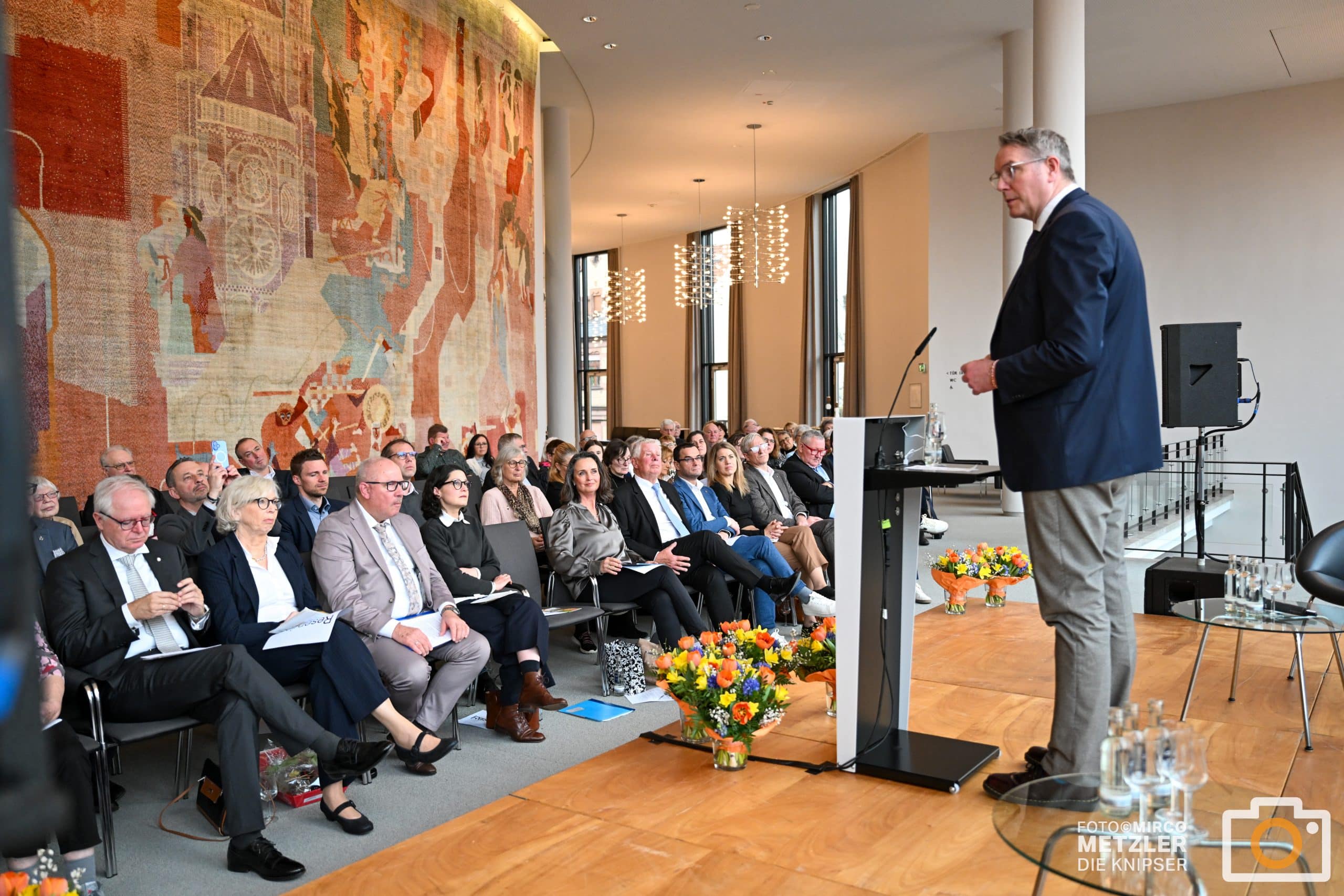 Am Anfang des Festaktes stand ein geistlicher Impuls von Dekanin Jutta Herbert und Propst Tobias Schäfer. Eine von Dr. Ulrike Löffler moderierte Gesprächsrunde, ließ Raum für Rückblick, Austausch und Perspektiven. Dabei wurde deutlich, wie stark die Wormser Hospizarbeit seit drei Jahrzehnten vom außergewöhnlichen Einsatz Ehrenamtlicher lebt. Mit Zeit, Mitgefühl und persönlichem Engagement stehen sie Menschen in einer existenziellen Lebensphase zur Seite. Dieses stille Wirken bleibt oft unsichtbar, ist jedoch für Betroffene und Angehörige von unschätzbarem Wert und aus dem sozialen Leben der Stadt längst nicht mehr wegzudenken.