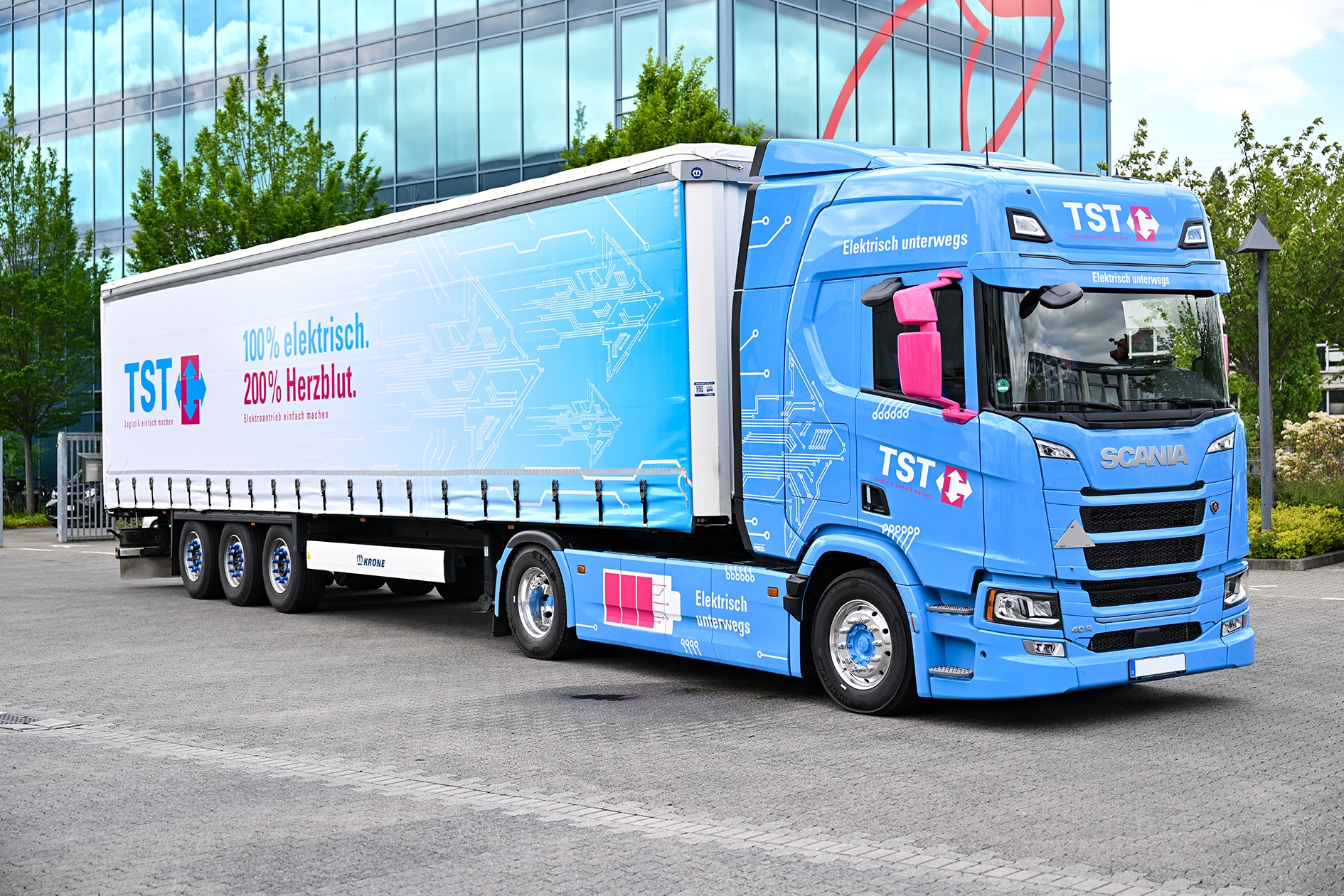 Das Familienunternehmen Werner & Mertz, das seit Einführung der Marke Frosch im Jahr 1986 als Nachhaltigkeits-Pionier unter den Reinigungsmittelherstellern gilt, hat gemeinsam mit dem langjährigen Logistikpartner TST einen emissionsarmen Shuttle-Verkehr zwischen Mainz und Worms aufgenommen. Der Lkw, ein batteriegetriebener E-Scania mit einem Gesamtzuggewicht von 44 Tonnen, verbindet das Werk am Hauptsitz von Werner & Mertz in Mainz mit dem Lagerstandort von TST in Worms. Drei Touren am Tag werden mit dem ersten E- Truck, der auf der 67 Kilometer langen Strecke eingesetzt wird, flüsterleise und klimaschonend abgewickelt.