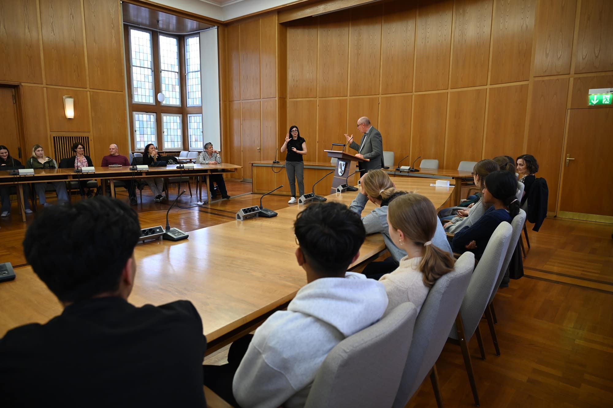 Im Rahmen des langjährigen Austauschs zwischen der Stadt Worms und der italienischen Partnerstadt Parma empfing Oberbürgermeister Adolf Kessel Schülerinnen und Schüler des Liceo Romagnosi aus Parma und des Rudi-Stephan-Gymnasiums sowie ihre begleitenden