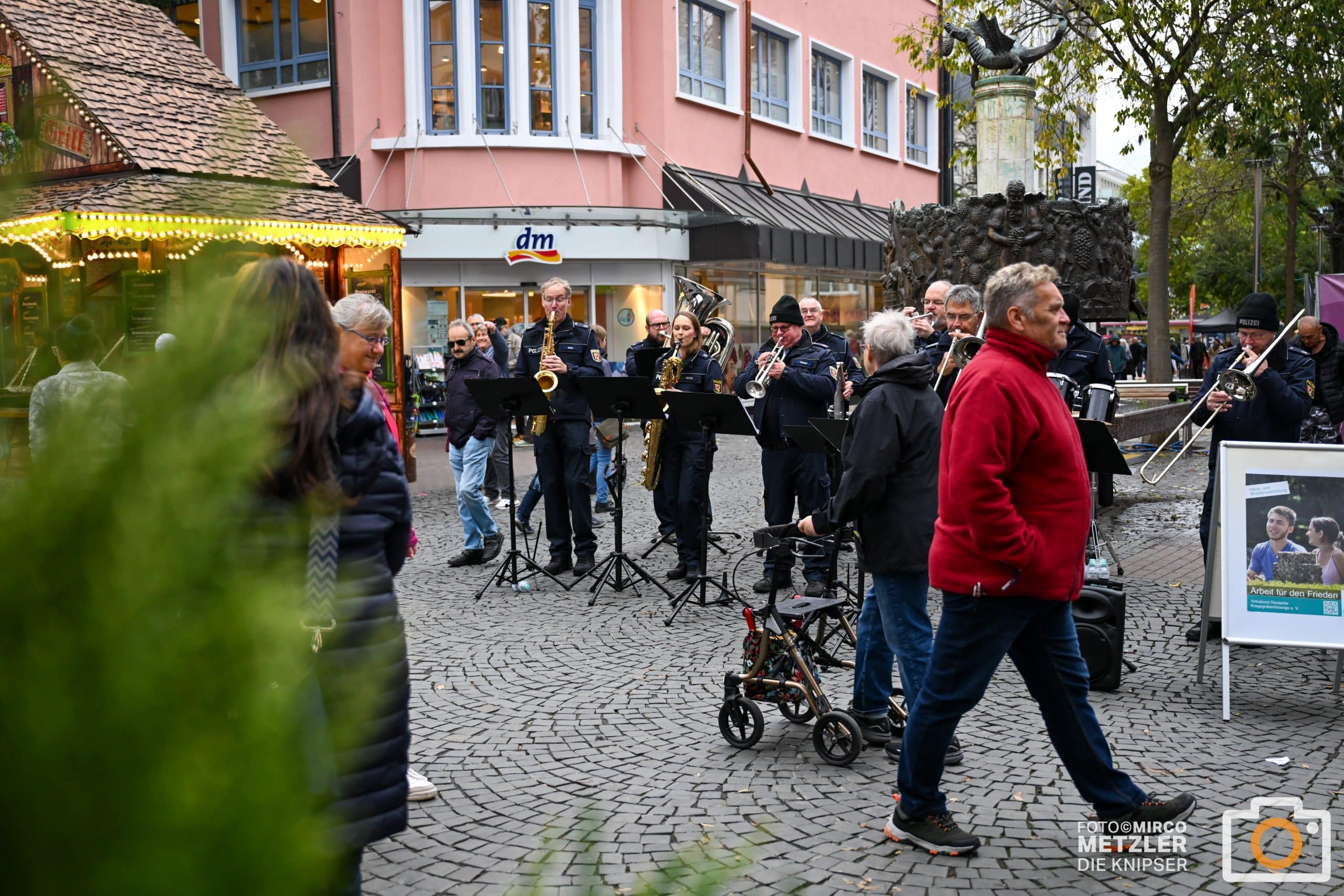 Für den musikalischen Rahmen sorgte die Brassband „Men in Blue“ des Landespolizeiorchesters Mainz, die mit ihren Darbietungen für eine besondere Atmosphäre sorgte und viele Passanten zum Verweilen einlud. Trotz kühler Temperaturen herrschte auf dem Platz eine spürbar herzliche und nachdenkliche Stimmung.